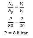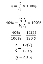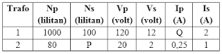 nilai efisiensi transformator sama = 40%, maka besar P dan Q adalah …
