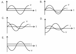 37.    Pada rangkaian RLC seri, jika XL > XC Grafik gelombang sinus yang benar adalah …