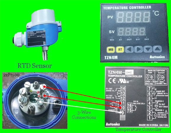 Untuk lebih jelasnya, anda dapat melihat gambar contoh cara pemasangan RTD sensor dan Temperature Controller dibawah ini: