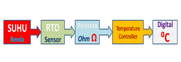 Kemudian perubahan Nilai resistan yang dihasilkan RTD tersebut akan dikonversikan untuk mendapatkan nilai suhu yang diukurnya.