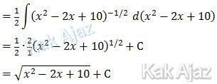 Sampai di sini, dx kita ganti dengan d(x2 − 2x + 10) kemudian dibagi dengan x2 − 2x + 10.