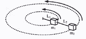=2 kg saling terhubung oleh tali dengan panjang = 0,5 m.