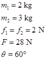 besar gaya F sebesar 100 N. Hitung percepatan dan tegangan tali sistem diatas.