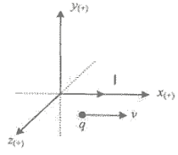 34. Sebuah muatan positif bergerak di bawah sebuah kawat berarus listrik Yang arah arusnya searah sumbu seperti gambar.