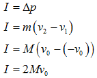 Bola bermassa M bergerak dengan kecepatan v menabrak dinding kemudian terpantul dengan besar kecepatan yang sama tapi arahnya berlawanan. Besar impuls yang diberikan oleh dinding pada bola adalah ….