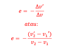 – rumus koefisien restitusi untuk benda yang kecepatannya (v) berubah setelah pantulan