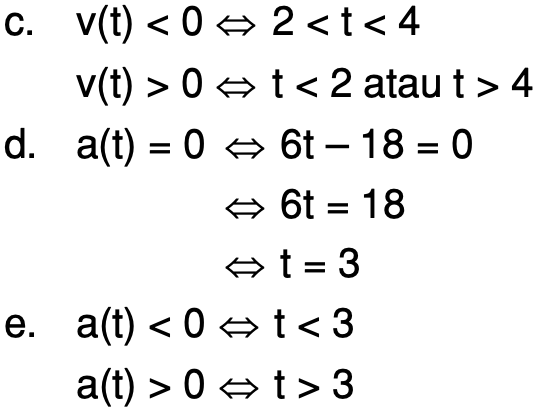 e. Tentukan pada interval mana percepatan partikel negatif dan pada interval mana percepatan partikel positif!