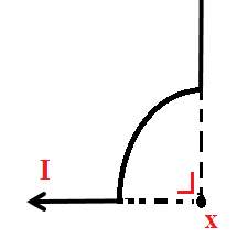 4. kawat berbentuk busur 1/4 lingkaran dengan jari – jari 2 cm dialiri arus sebesar 8 A dengan arah seperti gambar!