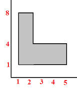 Y1 = 1 + 1/2 . 7 = 1 + 3,5 = 4, 5 (Angka 1 didapat dari koordinat awal / titik pojok kiri bangun pertama pada sumbu y)