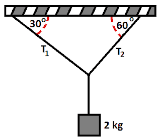 Sebuah balok 2kg digantung dengan dua tali seperti gambar