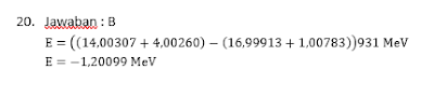 Diketahui massa inti N = 14,00307 sma, He = 4,00260 sma, O = 16,99913 sma, dan H = 1,00783 sma. 1 sma = 931 MeV, maka pada reaksi di atas …