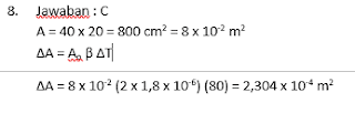 ukuran 40 cm x 20 cm. Jika plat dipanaskan dan suhunya menjadi 80°C, maka luas plat bertambah sebesar …