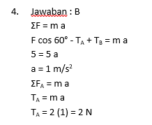 dan ditarik dengan gaya F = 10 N seperti gambar. Besar tegangan tali T antara
