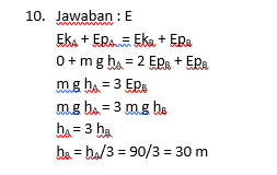 Ketika sampai B, besar energi kinetik bola sama dengan 2 kali energi potensial (EkB = 2 EpB), maka