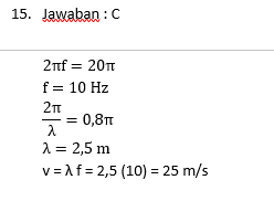 Persamaan suatu simpangan gelombang berjalan adalah y = 4 sin (20πt – 0,8πx). jika dalam satuan SI (mks), cepat rambat gelombang tersebut
